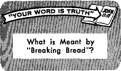 Supporting this conclusion is the record at Acts 2:42, 46 (ES), telling of the first converts to Christianity: "They devoted themselves to the apostles’ teaching and fellowship, to the breaking of bread and the prayers. And day by day, attending the temple together and breaking bread in their homes, they partook of food with glad and generous hearts.” Here again, so as to remove all ambiguity, the New World Translation uses, instead of “breaking bread,” "taking of meals” and “took their meals.” So from all the foregoing it is apparent that “breaking bread” refers simply to having a meal.