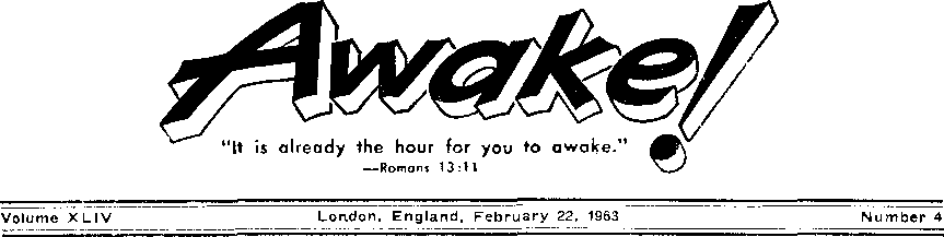 Newt sources that are able to keep you awake to the vital issues of our times must be unfettered by censorship and selfish interests. "Awake!’1 has no fetters. It recognizes facts, faces facts, is free to publish facts. It is not bound by political ambitions or obligations; if is unhampered by advertisers whose fees must not be trodden on; it is unprejudiced by traditional creeds. This journal keeps itself free that it may speak freely to you. But it does not abuse its freedom. It maintains integrity to truth.