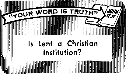 Is Lent a Christian institution? No, it is not, for not only are the Scriptures silent on Lent but they condemn and contradict the things Lent consists of and stands for. Why the very observance of seasons such as Lent is condemned in the Scriptures: “Now that you have come . . . to be known of God, how is it that you are turning back again to the weak and beggarly elementary things and want to slave for them over again? You are scrupulously observing days and months and seasons and years.”—Gal. 4:9, 10.