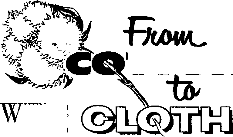 Can you picture it now? Cotton to clothing, a tuft of this fluffy cotton transformed into a gay-colored dress or a fancy sport shirt. Before this royal fiber goes on its way to cloth or clothing it must be separated from the seed. This is called ginning. Until the invention of the cotton gin it was a day's work to remove a pound of fiber. The gin’s hook-tooth saws tear the fibers from the seeds. The moisture, trash and dust go too. The free fibers, called lint, are sucked away to a press box, and the seeds are saved for next year’s crop or go into products such as cooking oil, insulation and fertilizer. The cotton fiber is pressed into oblong-shaped bales, wrapped and strapped with steel bands. The bales weigh 478 pounds net, 500 gross. Off they go to the mills where cotton is made into cloth.