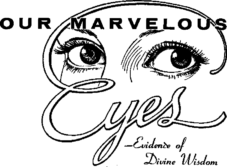 YES, marvelous is the word to use in describing our eyes. Truly they give reason for wonder and astonishment and present powerful evidence of divine wisdom. By means of them we are able to take in a continual flow of visual impressions, of light and shadow, of colors, of movement, and even of distance.