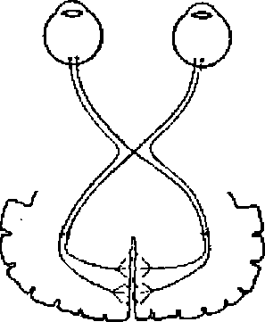 The space between the lens and the retina at the back of the eyeball is filled with a gelatinous mass considerably thicker in consistency than the aqueous body. It accounts for four-fifths of the mass of the eyeball and is encased In a special transparent membrane. One of its chief purposes may be said to be to keep the eyeball from collapsing. Though when submerged in water it cannot be seen, it contains an extremely delicate meshwork. Moving spots that are occasionally seen floating before one’s eyes are “ghost” blood cells floating around in this mass known as the vitreous humor. When, due to malnutrition or undue eyestrain caused by poor illumination or reading fine print, the eyeball becomes elongated, nearsightedness results, according to the generally accepted opinion. When there is a shortening of the eyeball, farsightedness. Farsightedness also results when the lens, because of age, has lost some of its ability to bend.