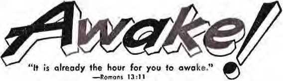 In every issue "Awoke!" presents vital topics on which you should be informed. It features penetrating articles on social conditions and offers sound counsel for meeting the problems of everyday life. Current news from every continent passes in quick review. Attention is focused on activities in the fields of government and commerce about which you should know. Straightforward discussions of religious issues alert you to matters of vital concern. Customs and people in many lands, the marvels of creation, practical sciences and points of human interest ore all embraced in its coverage. "Awake!" provides wholesome, instructive reading for every member of the family.