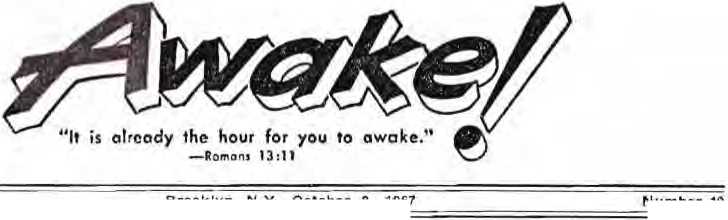 In every issue "Awake!" presents vital topics on which you should be informed. It features penetrating articles on social conditions and offers sound counsel for meeting the problems of everyday life. Current news from every continent passes in quick review. Attention is focused on activities in the fields of government and commerce about which you should know. Straightforward discussions of religious issues alert you to matters of vital concern. Customs and people in many lands, the marvels of creation, practical sciences and points of human interest are al! embraced in its coverage. “Awake!" provides wholesome, instructive reading for every member of the family.