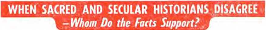 HAVE you ever been disturbed in times past because of extreme statements made by scholars critical of the Bible? For example, how a Roman Catholic theologian in this year of 1967 could say that "twentieth-century Christians will be prepared to grasp exactly what the Bible says only when they finally and fully realize that they cannot approach the Bible the same way they approach a textbook history"?1 If so, then the evidence presented in the foregoing articles in this magazine should have served to reassure you that the Bible is indeed factual history.
