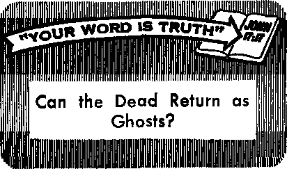 ■’ How, then, can one explain the appearance of “ghosts”? In some instances it has proved to be simply a case of mistaken identity. Often there are persons who strongly resemble other persons in their features. For example, recently a missionary in Africa called on a home and she was mistaken for a doctor whom she resembles. If she had left when the householder ran to announce the 'doctor’s’ arrival to other family members, and if the doctor, who worked far away, happened to have died just prior to the missionary’s visit, the missionary could have been mistaken for the doctor’s “ghost.” Incidents similar to this are responsible for many “ghost” stories in certain localities.