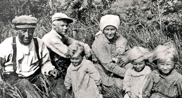 From left: Matti (father), Tauno, Saimi, Maria Emilia (mother), Väinö (baby), Aili, and Annikki in 1935