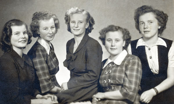 From left: Eeva Kallio, Saimi Mattila-Syrjälä, Aili, Annikki, and Saara Noponen in 1949