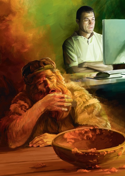 11 Is what the Bible says about Esau relevant to Christians today? Indeed it is. The apostle Paul cautioned fellow believers to be careful that “there may be no fornicator nor anyone not appreciating sacred things, like Esau, who in exchange for one meal gave away his rights as firstborn.” (Heb. 12:16) That warning still applies to Christians. We must maintain our appreciation for sacred things so that we will not be overpowered by fleshly desires and lose our spiritual inheritance. Why, though, did Paul refer to fornication in connection with Esau’s action? Because having a fleshly disposition like that of Esau makes it more likely that a person will give up sacred things for illicit pleasures, such as fornication.