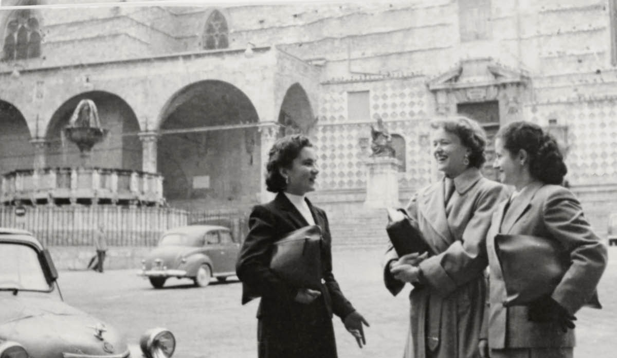 With a circuit overseer’s wife and Anna near the medieval Fontana (Fountain) Maggiore in Perugia, 1954