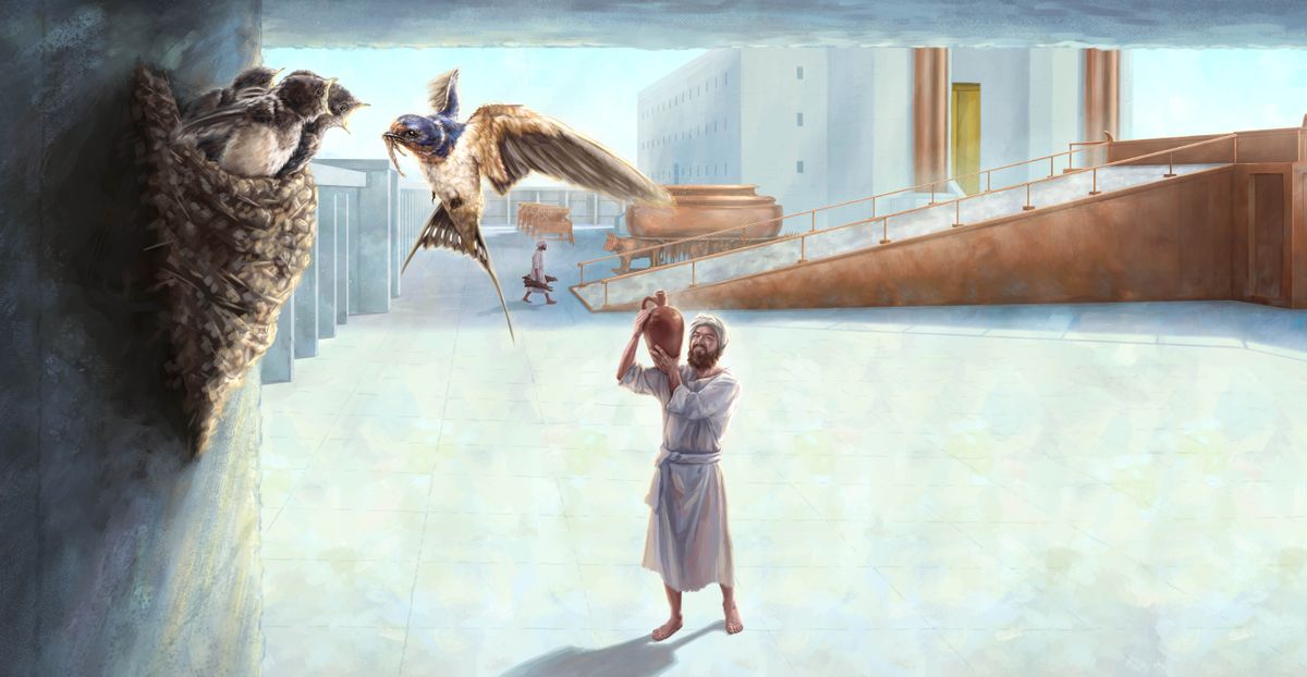 One of the sons of Korah looks longingly at a swallows’ nest in the temple courtyard