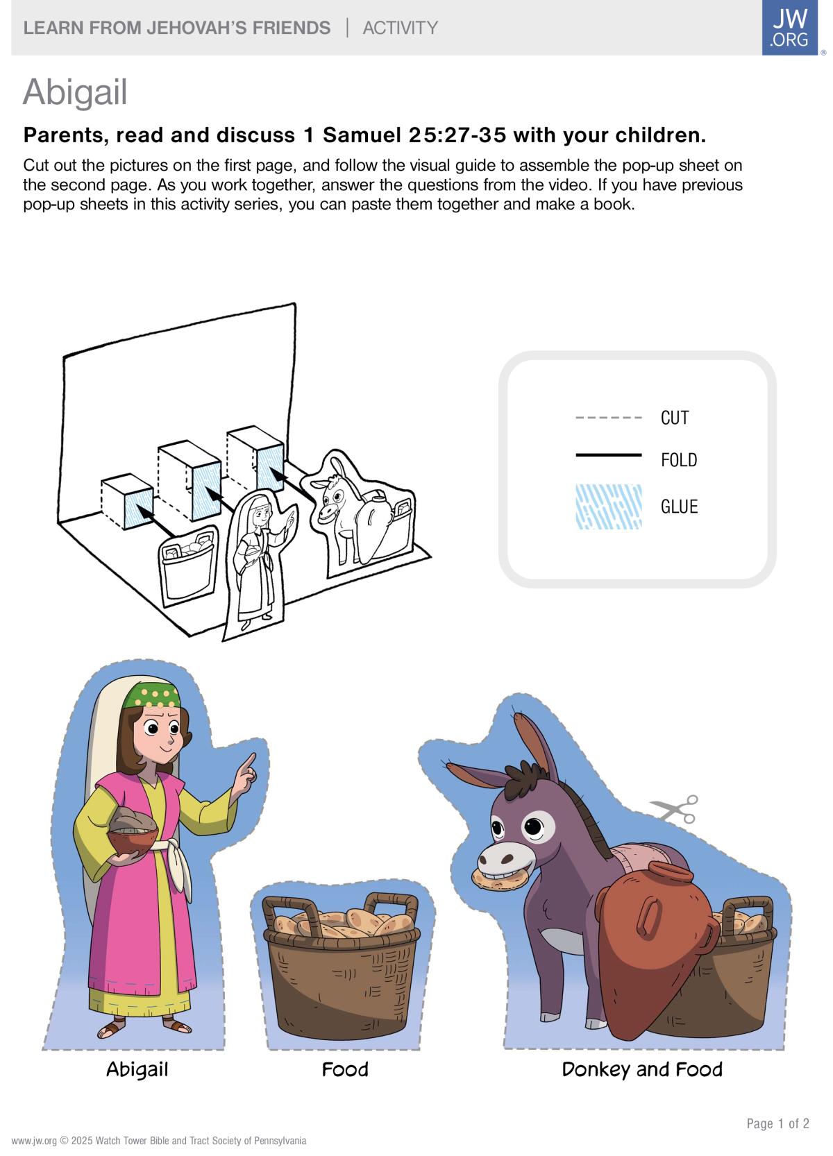 Use this printed activity to learn from Jehovah’s friend Abigail.