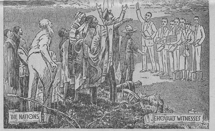 The true Jehovah God is the God of wisdom, justice and love. The mimic god is the embodiment of wickedness, and the deceiver and oppressor of the people. The time is at hand for his wicked rule and oppression to for ever end. The true God in the exercise of his loving-kindness now sends forth his witnesses to give this warning to the people, that they may have an opportunity to take their stand on the side of Jehovah and maintain their integrity toward him and escape. Jehovah’s witnesses come to you with the message of truth from the Word of Jehovah because they are commanded to do so by the Most High. They can receive no earthly gain by telling you the message. They can maintain their integrity toward God only by being obedient to his commandments and doing so willingly and joyfully. Jehovah’s witnesses now bring to you his words, set alongside the facts which are well known to you, and by which yon can determine what is the truth, and what is the right course to pursue.