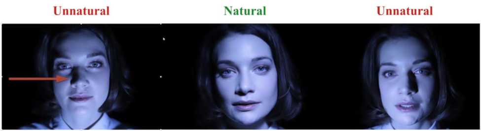 Lighting Ratio: The difference between the intensity of light hitting the key side versus the fill side of face, can be adjusted to evoke a different mood in a scene or portray a person in a certain way.