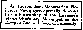 This sermon was published in Peoples Pulpit, Volume one, Number 3. The interest aroused and the great demand for copies of thia sermon have bees remarkable. A sample ©opy will be mailed to any one free.