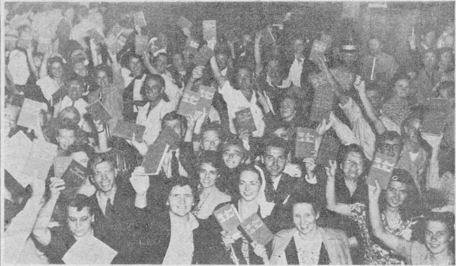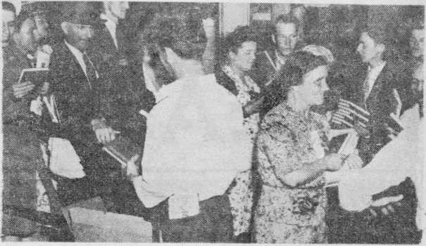 Eclipsing any material gift that oould have been presented to them, this new gospel-preaching instrument was hailed by the multitudes with cries of joy and appreciation. Ushers who distributed the new publication as the crowds filed out of the Stadium were unable to hand out the books fast enough.