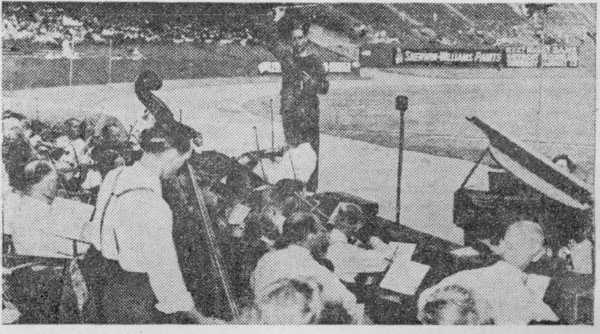 So that the music would be up to the Theocratic standard as displayed-in all of the other provisions of the convention, on Saturday announcement was made that auditions would be held for all wishing to play in the orchestra or sing in the choir. By the time the rehearsal began Sunday forenoon, one hundred musicians had assembled in the orchestra, and Sunday evening, with the convention moving to the Stadium, the orchestra began to furnish music for it.