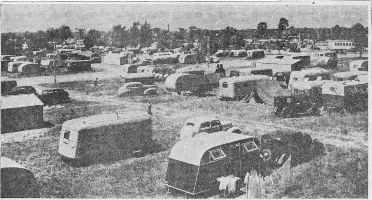 On approaching the camp a remarkable scene greets the eye. Laid out in orderly fashion is a varied collection of tents, housecars, trailers, converted trucks,