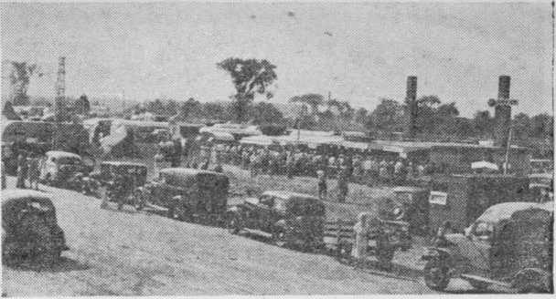 Observation of car license plates indicated that quite a number had come from far-away California, one party in particular having experienced considerable difficulties in the long journey. This party was made up of 40 brethren traveling in two trucks and two automobiles. Engine trouble soon held the party up, and one serious breakdown necessitated removing the entire engine and fitting a new crank shaft at the roadside, an operation which took from 2 a. m. till 12 noon. Nevertheless they got there on time, in many instances driving day and night to make up for losses.